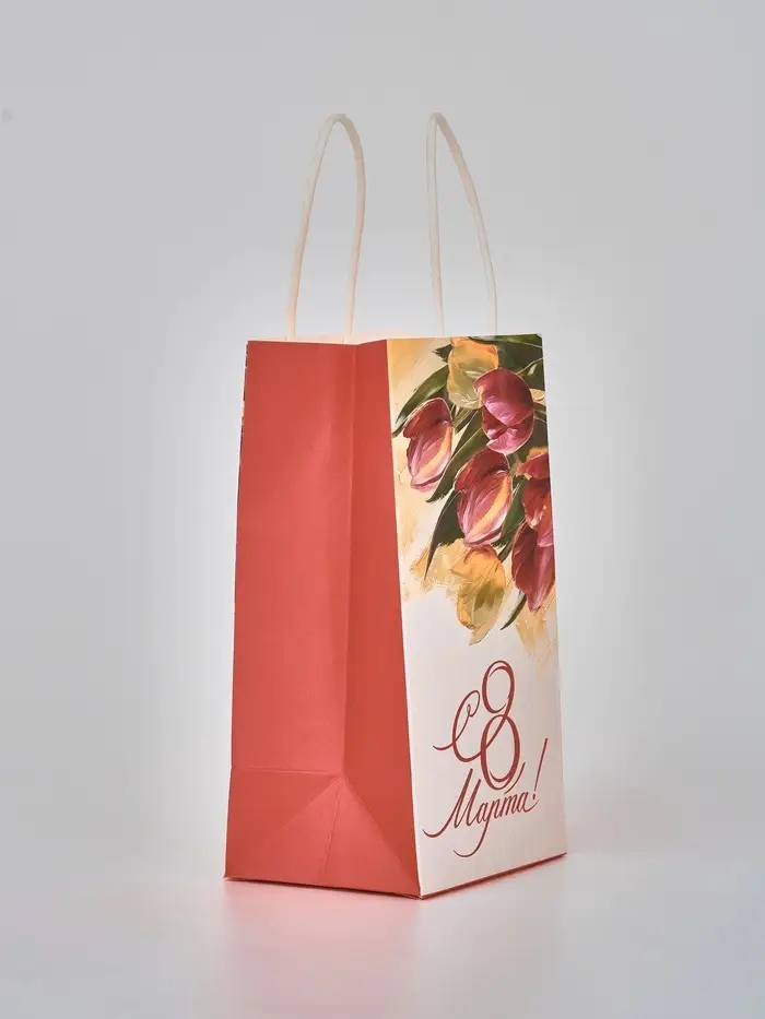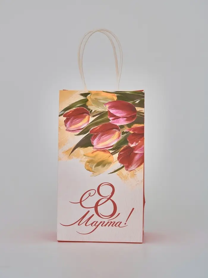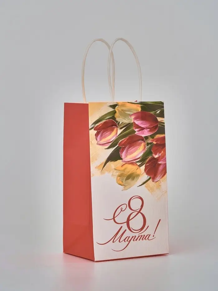 Пакет подарочный крафт «8 марта», 12 × 21 × 9 см