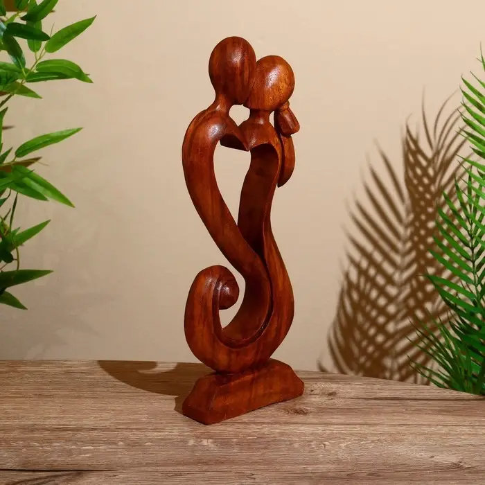 Индонезийские мастера-ремесленники чтят традиции и народные поверья, поэтому неспроста они создали этот сувенир «Пара Бесконечность», 40×14×4.5 см, дерево. Ведь знак бесконечности — это парный символ, который как бы соединяет в единое целое мужскую солнечную половину с женской луной. «Бесконечность» в обличии влюбленной пары подра¬зумевает равенство между мужской и женской силами, веду¬щее к глубокому пониманию взаимоотношений. Такой сувенир станет актуальным подарком на годовщину, 14 февраля или другую памятную для Вас дату. Расположите его в спальне: «в тайничке», чтоб никто не видел эту символьную статуэтку кроме Вас и Вашей второй половинки, пусть она бережно хранит Ваши чувства и любовь.