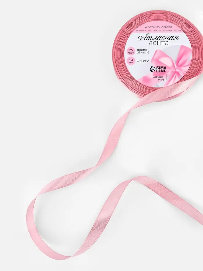 Атласная лента гладкая и приятная на ощупь. Используйте её для отделки изделий, украшения подарков, свадебного оформления, а также в техниках скрапбукинг и канзаши.