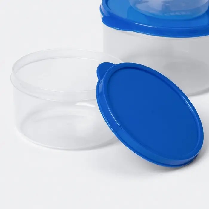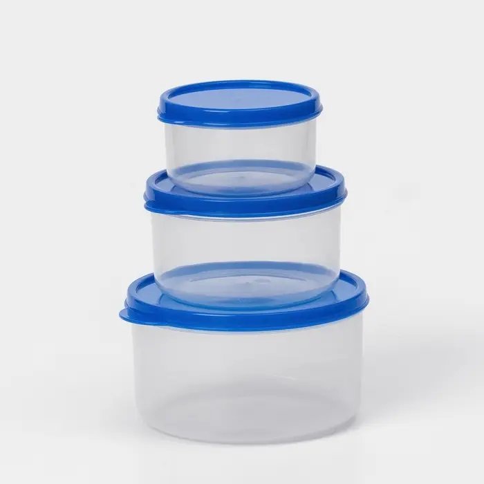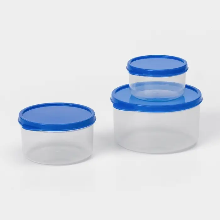 Набор контейнеров пищевых круглых Доляна, 3 шт: 150 мл, 300 мл, 500 мл, прозрачные, крышка синяя