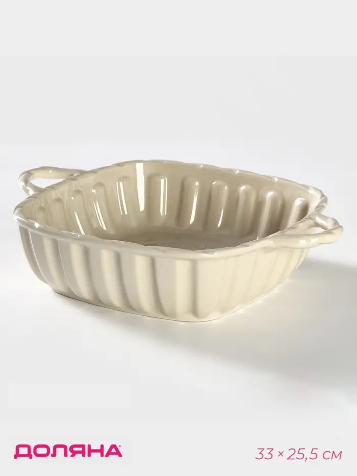 Форма для выпечки из жаропрочной керамики Доляна «Массимо», 33×25,5×7,5 см см, цвет бежевый