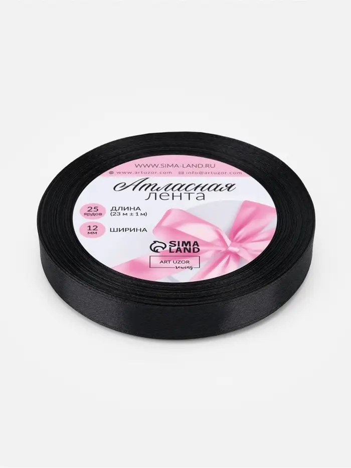 Лента атласная, 12 мм × 23 ± 1 м, цвет чёрный №39