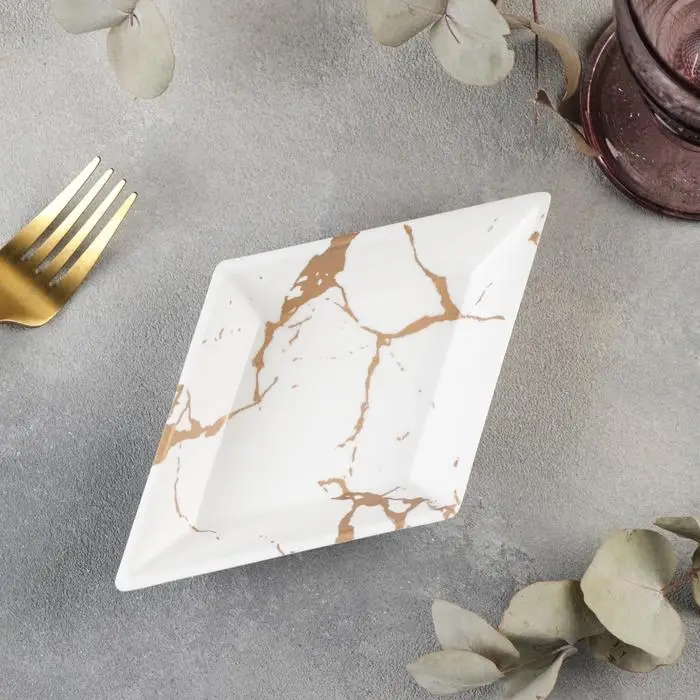 Блюдо фигурное «Аура», 18,8×11×2,5 см, цвет бело-золотой