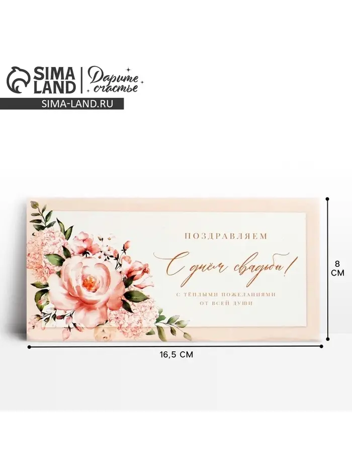 Конверт для денег «С днём свадьбы», 16.5×8 см