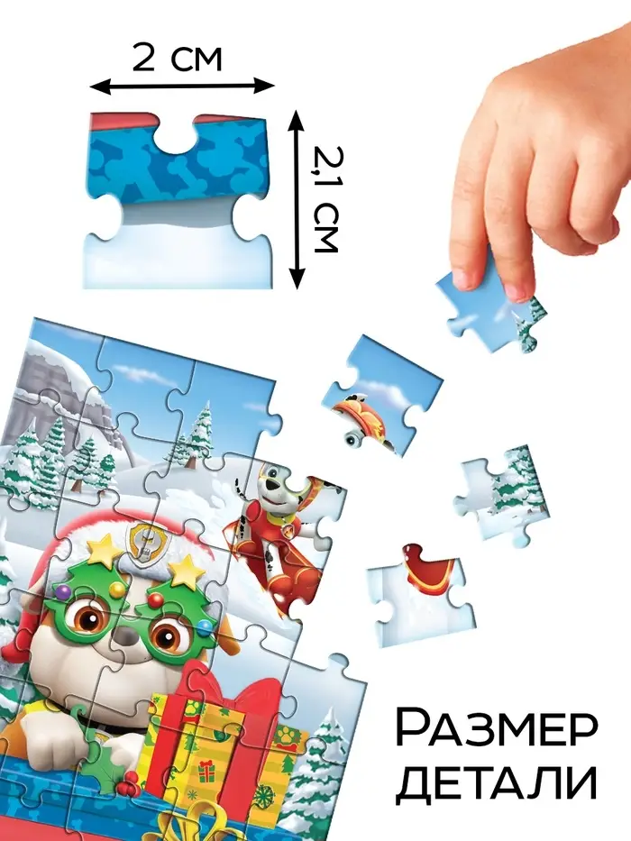 - Яркие изображения с любимыми героями «Щенячьего патруля» переносят ребёнка в мир приключений и зимних праздников.