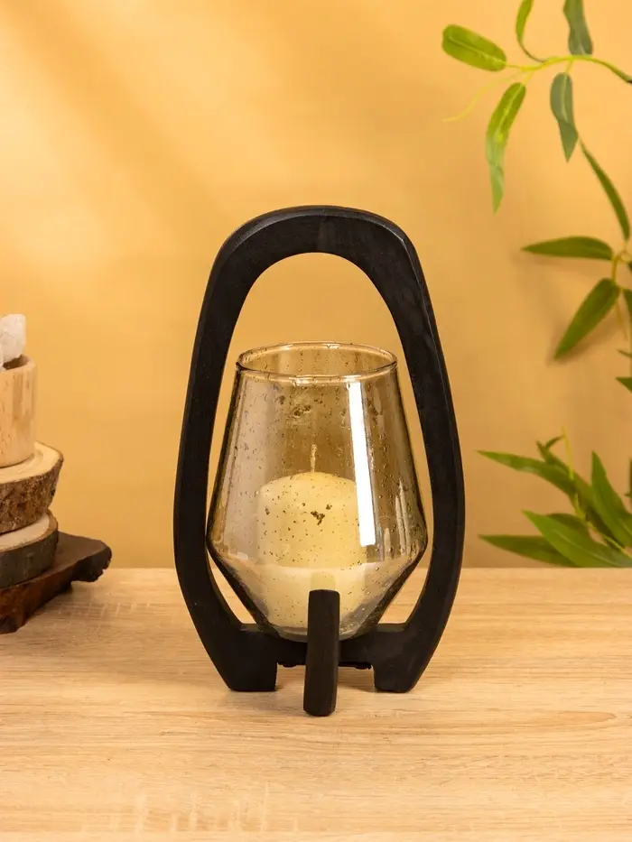 Подсвечник "Аура" 13х15х26 см, стекло, дерево