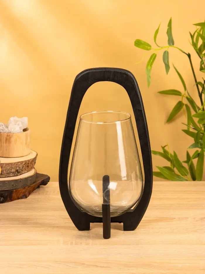 Подсвечник "Аура" 18х19х33 см, стекло, дерево