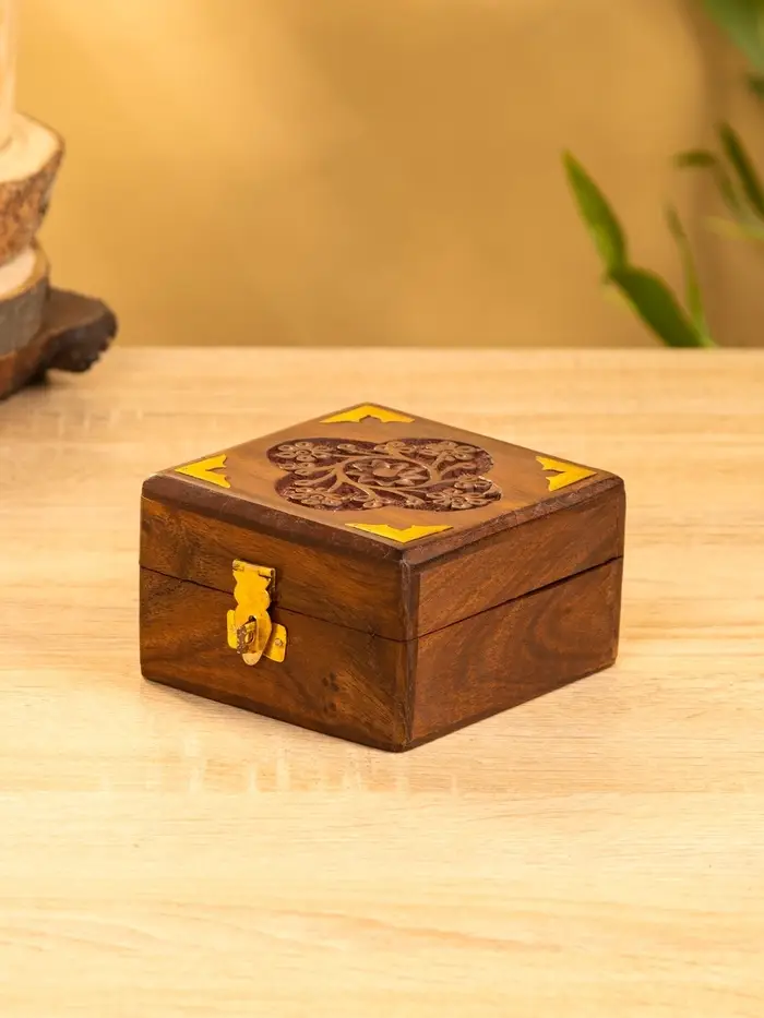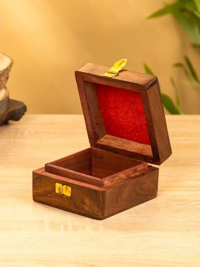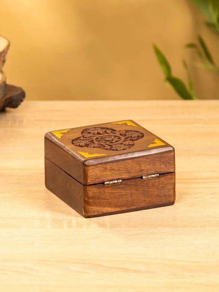 Шкатулка квадратная с замочком латунь 10х10х6 см, дерево шишам