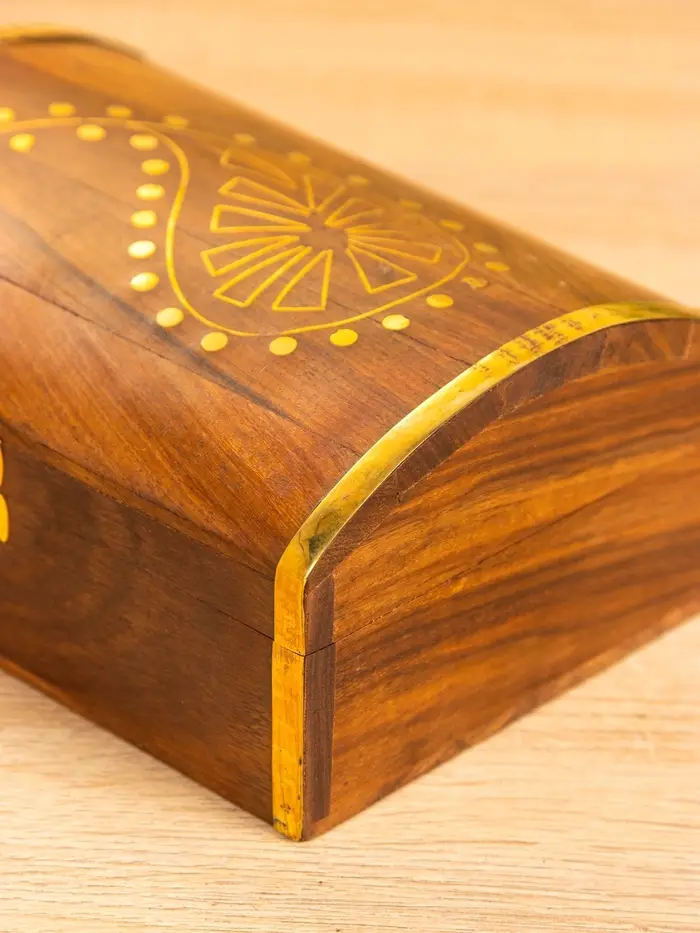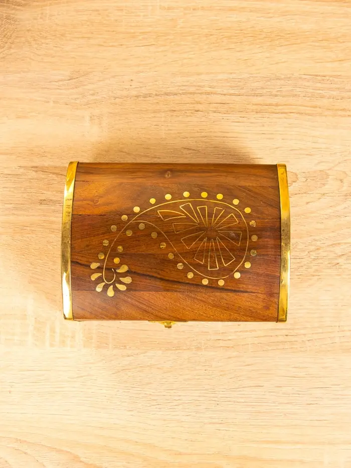 Шкатулка "Глу" 18х12,8х8 см, дерево шишам, латунь