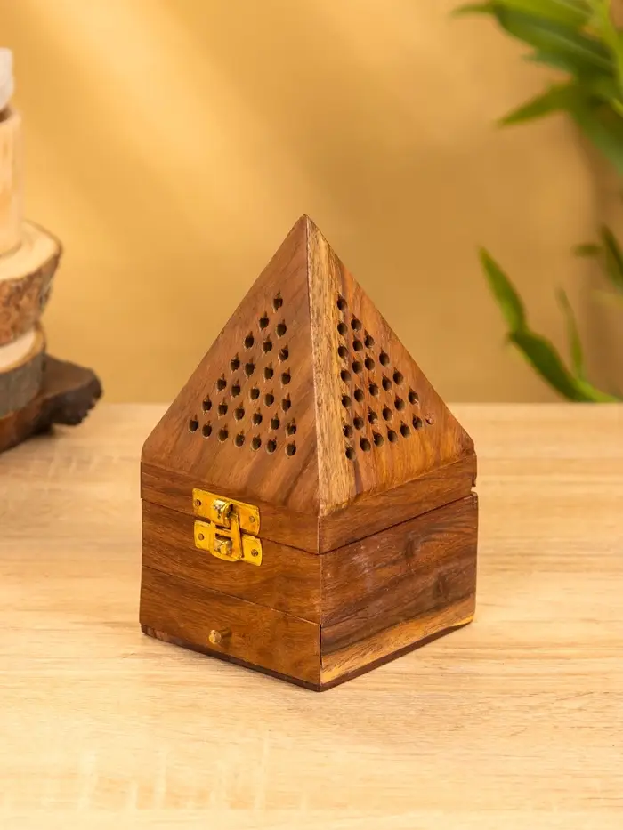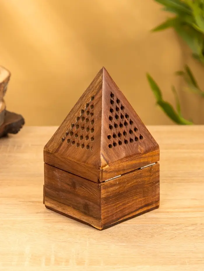 Подставка под благовония в форме пирамиды "Джали" 9х9х15,5 см, дерево шишам