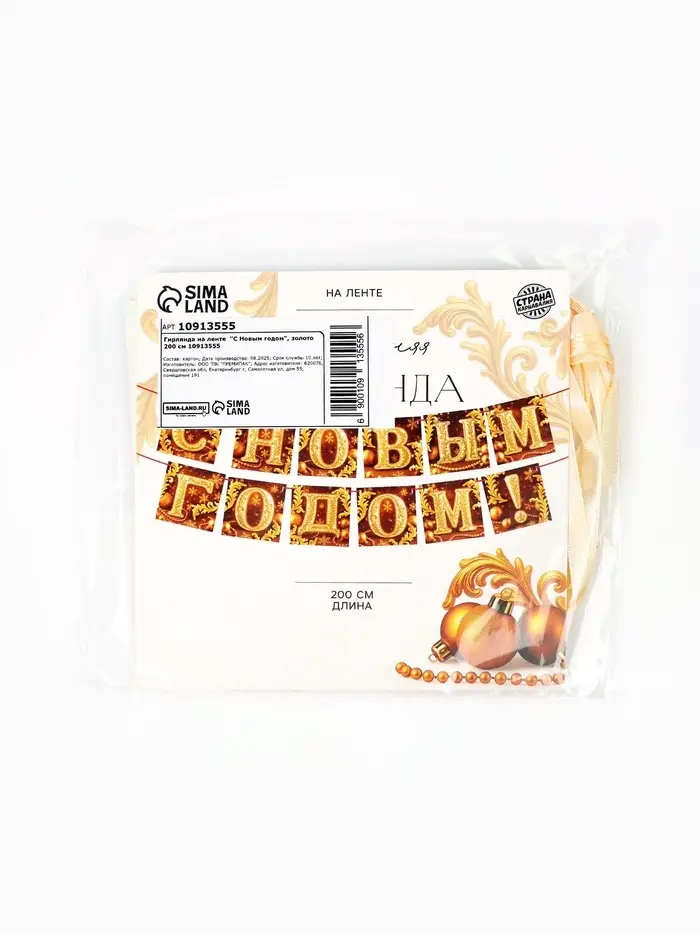 Гирлянда на ленте «С Новым годом», золото, 200 см