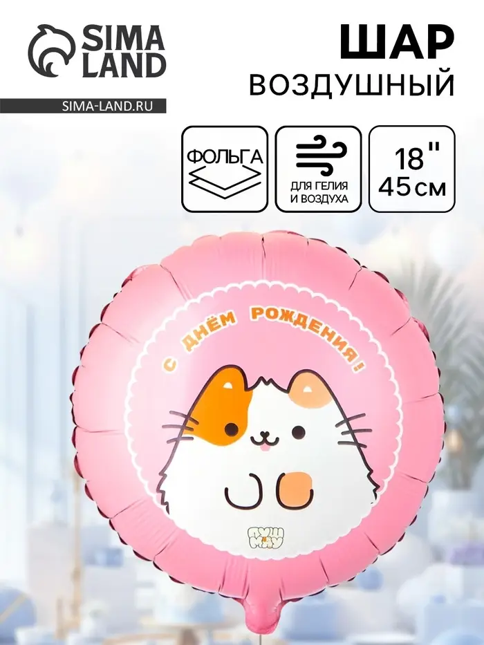 Воздушный шар фольгированный 18" «ДР ПушМяу»
