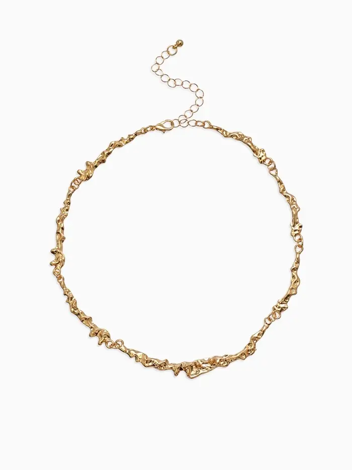 Колье "Мятое" тонкое, цвет золото 35см+ удл