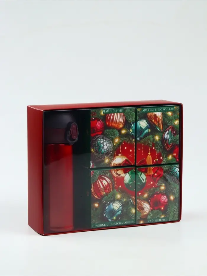 Набор чай термос арахис печенье с предсказанием «Уютного Нового года»