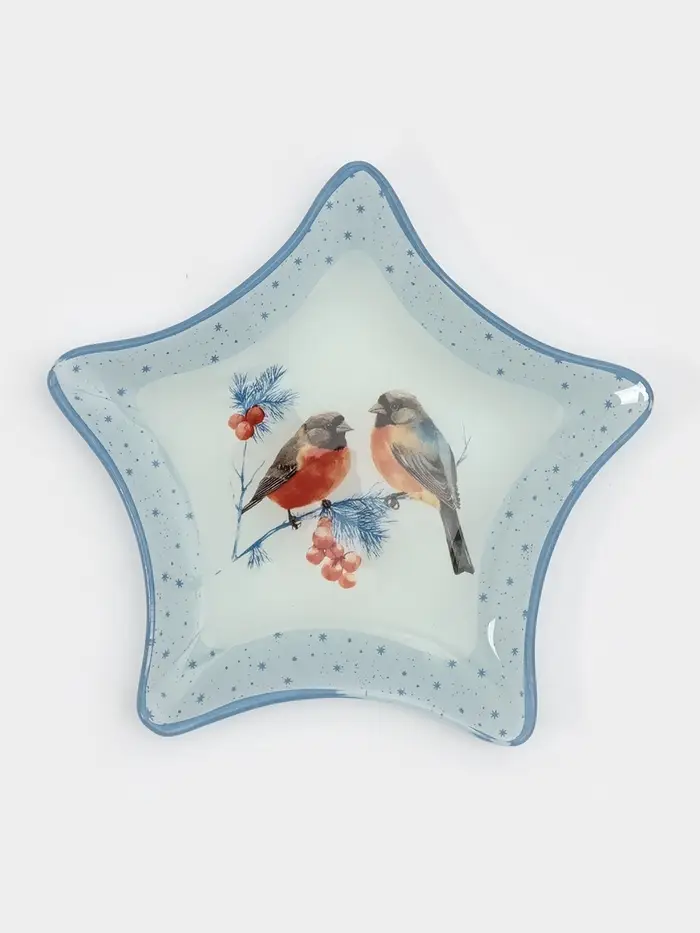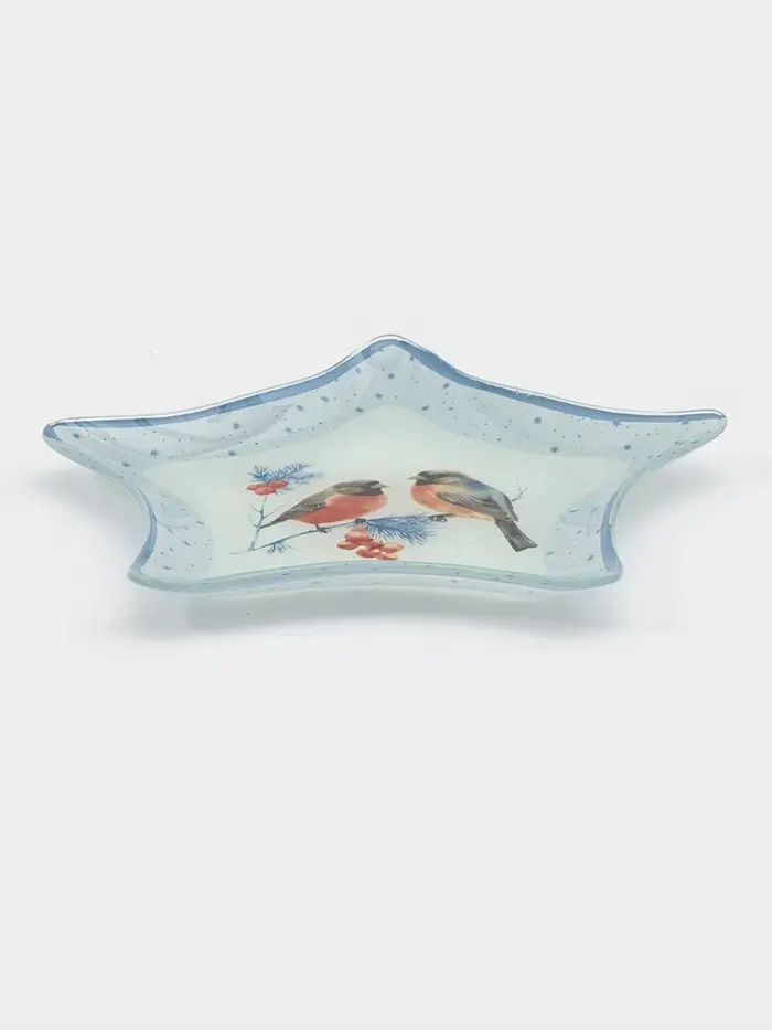 Блюдо сервировочное звезда "Снегири на ветке" 19,5 см