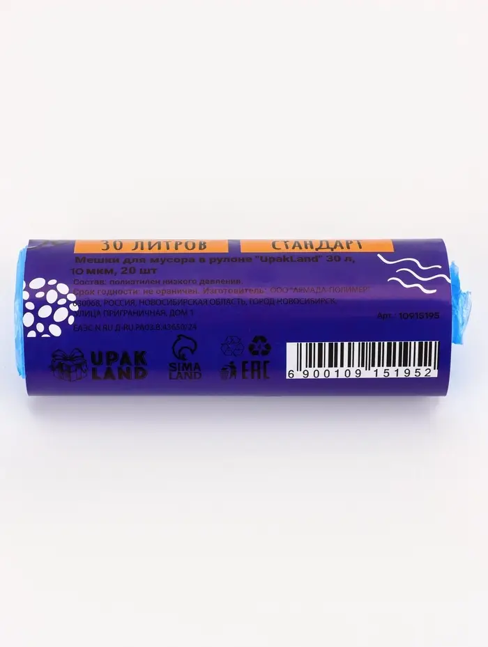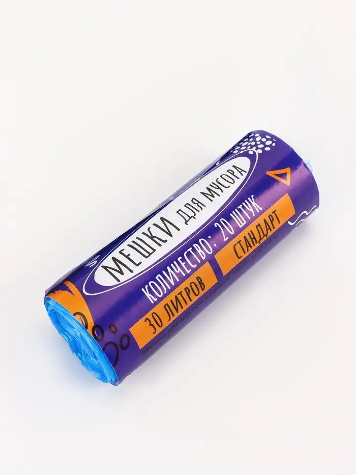 Мешки для мусора 30 л, ПНД, 10 мкм, 20 шт в рул, цвет синий