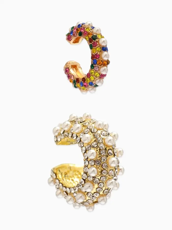 Главной особенностью модели являются крупные кольца, выполненные в эффектной цветной гамме, дополненные стразами, создающими иллюзию драгоценных камней. Они прекрасно сочетаются как с повседневной одеждой, так и с праздничными нарядами, мгновенно превращая вас в центр внимания. Уникальная конструкция каффа без прокола делает их абсолютно безопасными и комфортными в ношении, позволяя наслаждаться прекрасным внешним видом без ущерба здоровью.