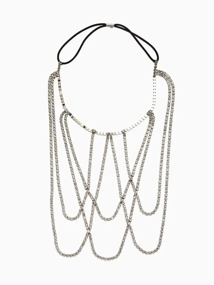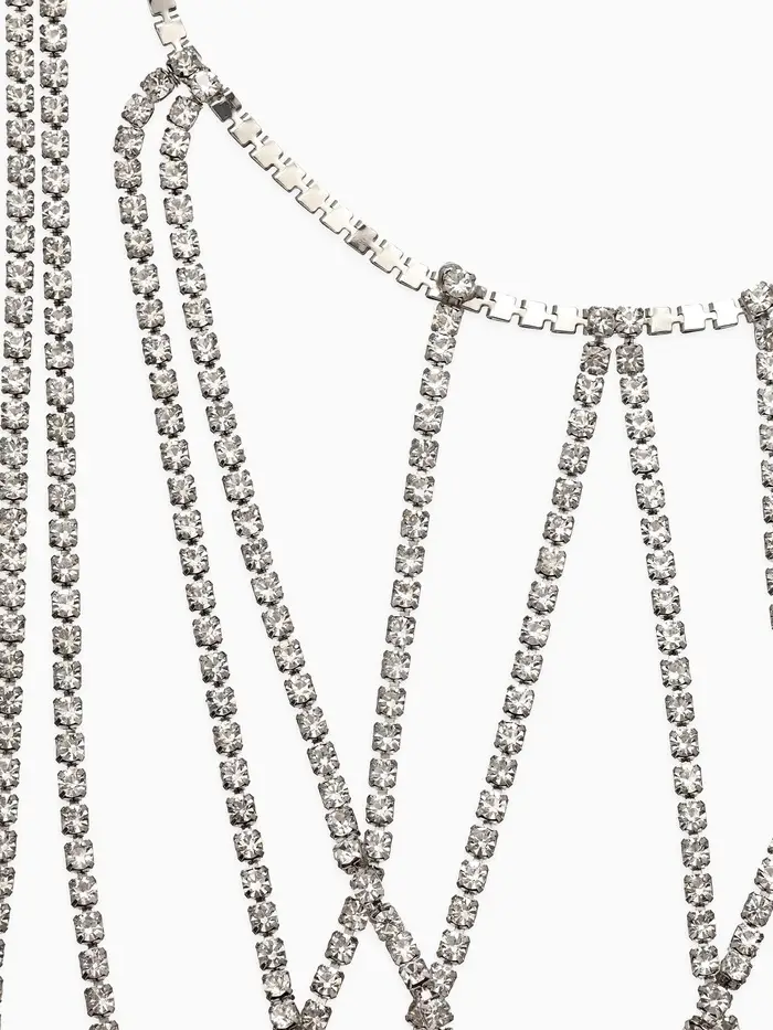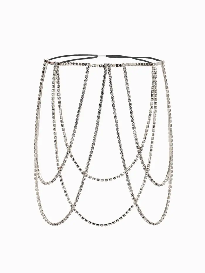 Цепочка на бедро бодичейн "Ярусы" со стразами, цвет белый в серебре