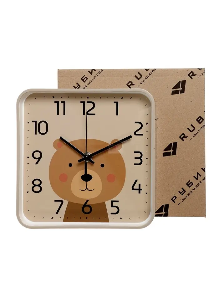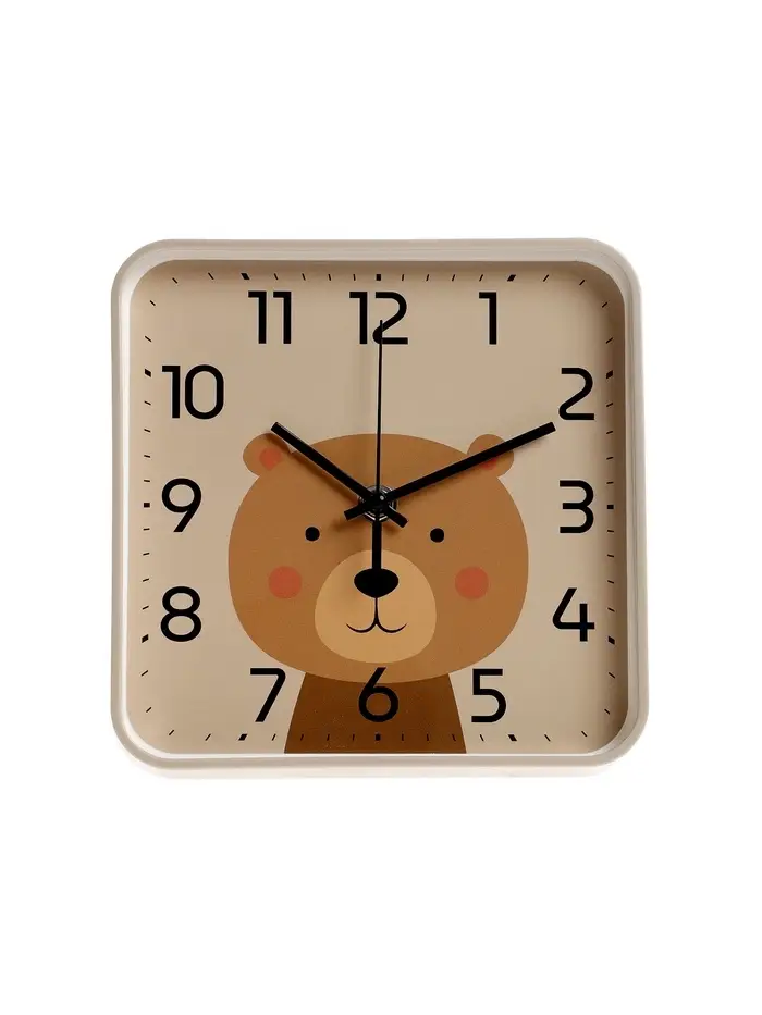 Часы настенные "Медвежонок", детские, плавный ход, 19х19см, бежевые