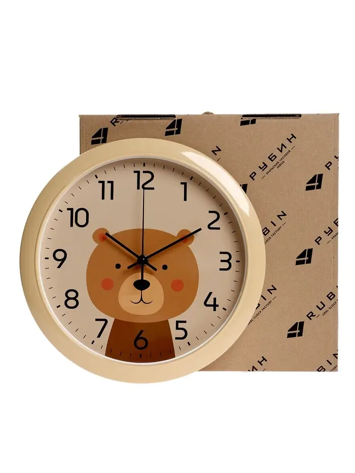 Часы настенные "Медвежонок", детские, плавный ход, d=29см, бежевые