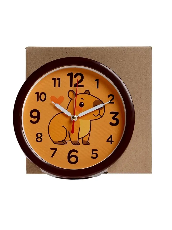 Будильник "Капибара", плавный ход, d=15см, корпус коричневый