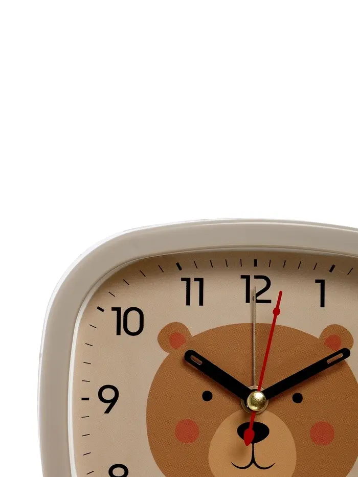 Будильник "Медежонок", плавный ход, 12.5х10.5 см, бежевый