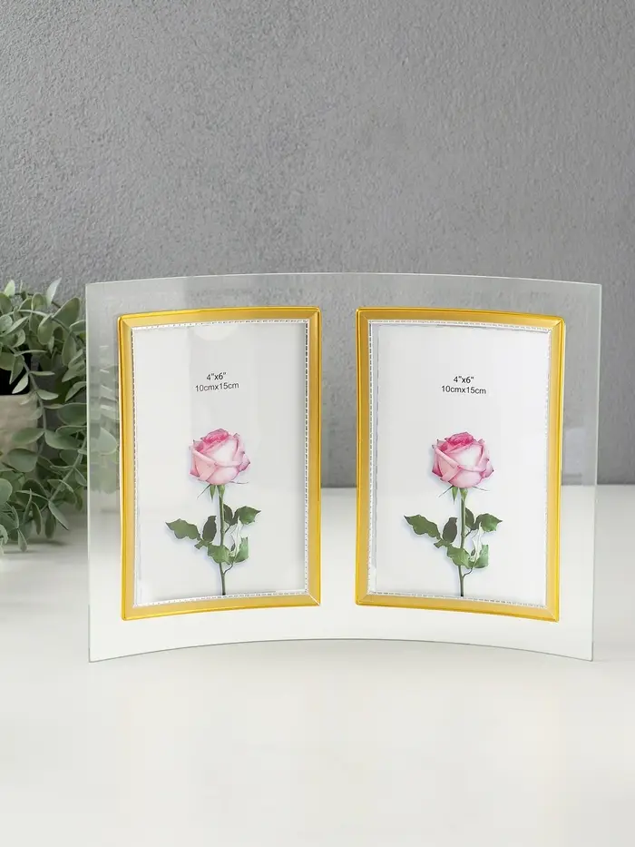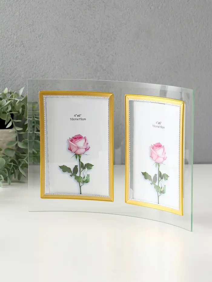 Фоторамка двойная стекло 10х15 см "Золотой кант" вертикаль 28х20,5 см