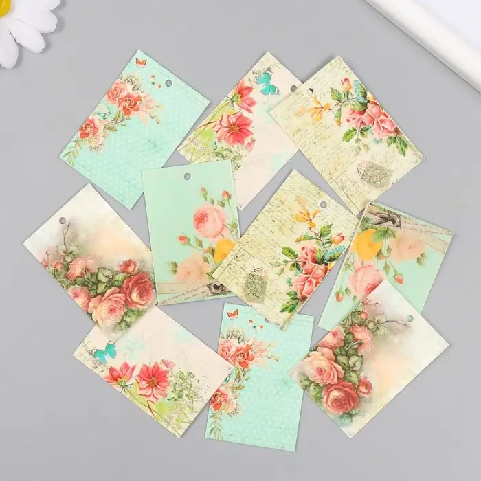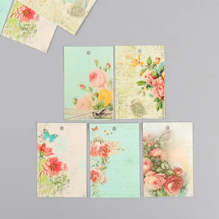 Набор бирок для подарков, цветов «Винтаж», 10 шт. (5 видов), картон, 4×6 см