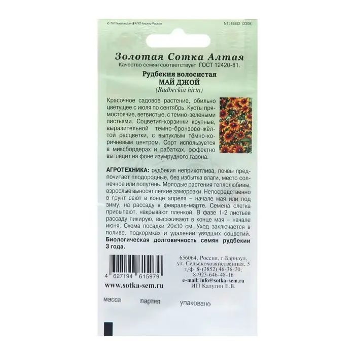 |  | Семена цветов Рудбекия "хирта" Глориоза, ц/п, 0,2 г. | 8130040 | Семена Алтая | 2 шт. |