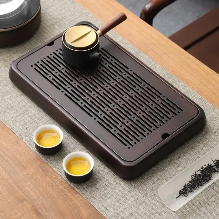 Поднос (чабань) - большая деревянная чайная доска для чайной церемонии. Этот изысканный предмет из натурального бамбука станет неотъемлемой частью вашего чайного ритуала. Прямоугольной формы и красивого дизайна, он подарит вам уют и комфорт во время чаепития. Поднос идеально подходит для сервировки чая. Вы можете удобно разместить на нем свои чайные принадлежности, а также поставить чашки и чайник. Доска имеет специальный слив воды, который предотвратит разлив чая на вашем столе.