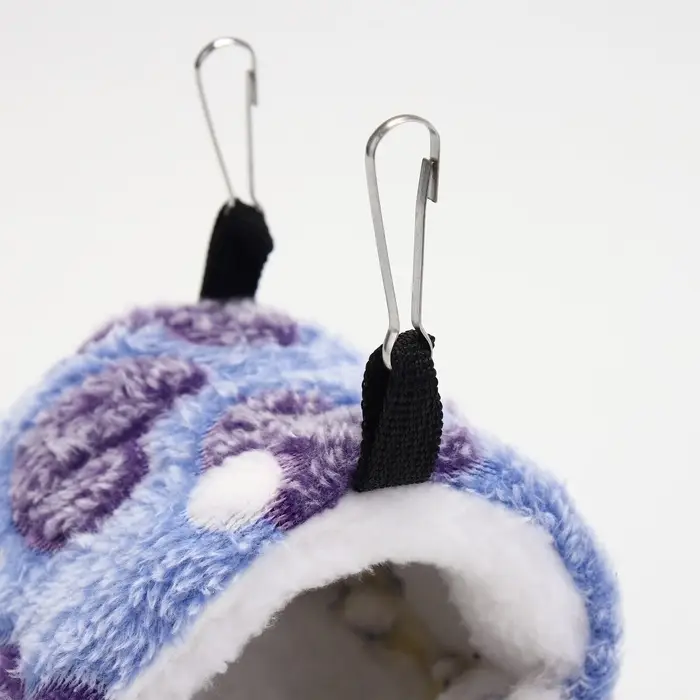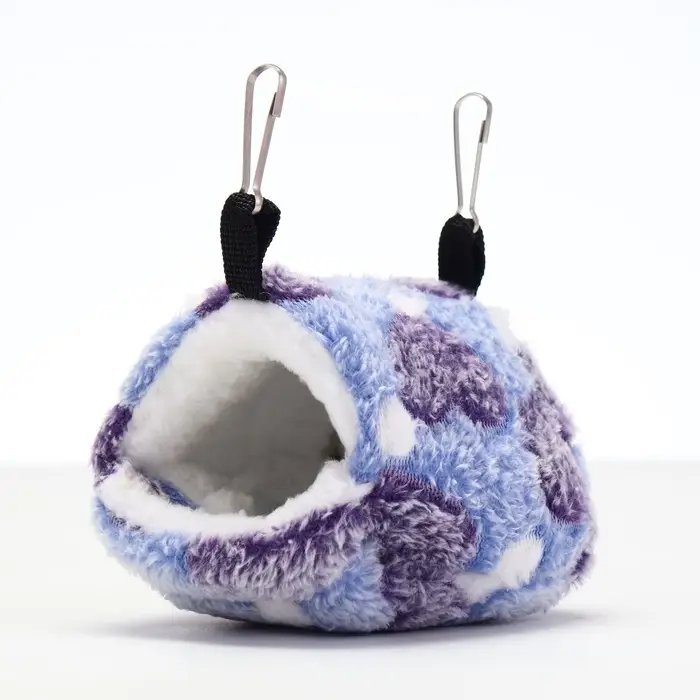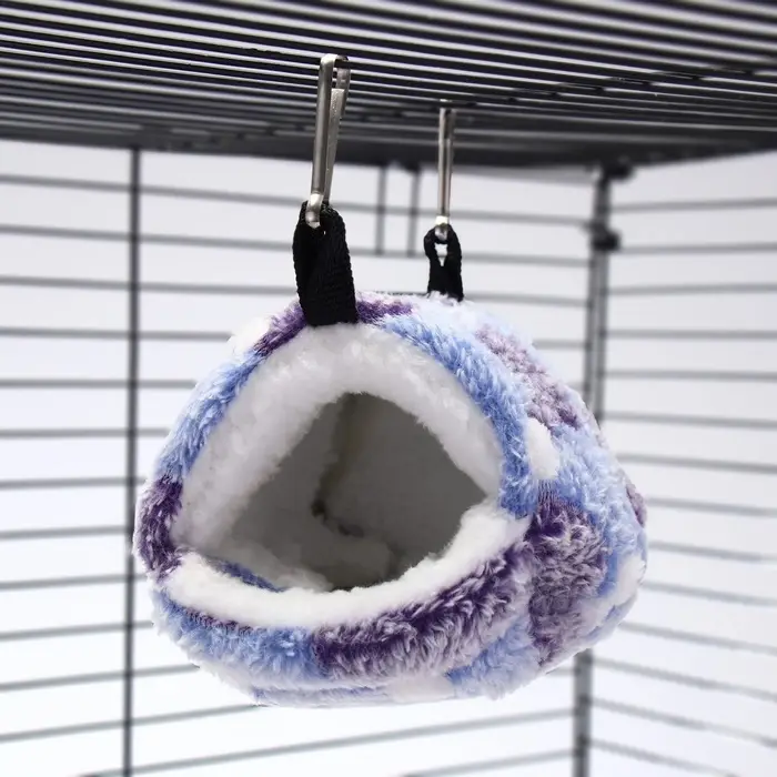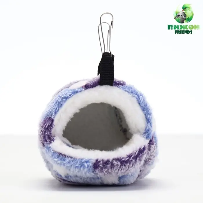 - Легкость установки: подвесной механизм с карабином позволяет удобно разместить домик в любом уголке клетки.