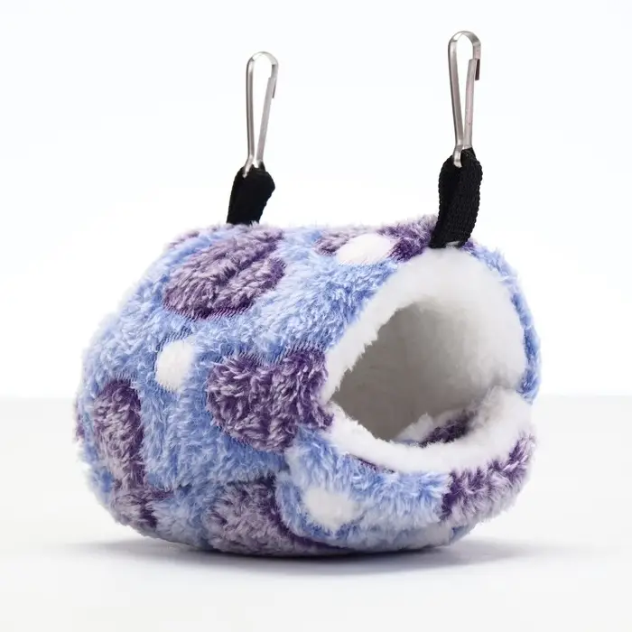 Удобный подвесной дизайн позволяет легко закрепить домик в клетке с помощью карабина, создавая для вашего питомца укромное убежище. Это важно, так как наличие уединенного места снижает уровень стресса у животных, улучшая их общее состояние и поведение.