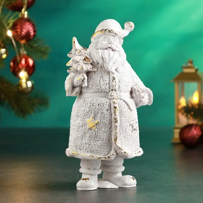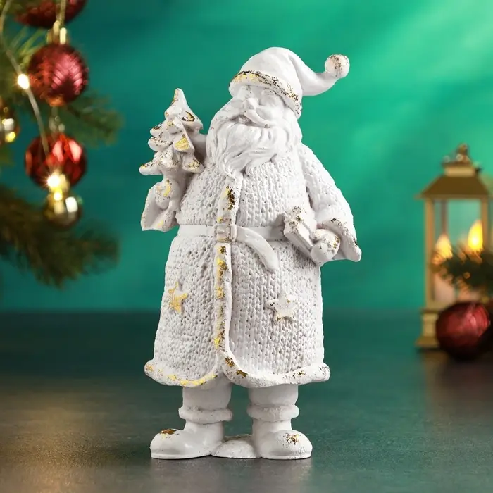Фигура "Дед Мороз вязаный большой" 20х12х8см, белый с позолотой