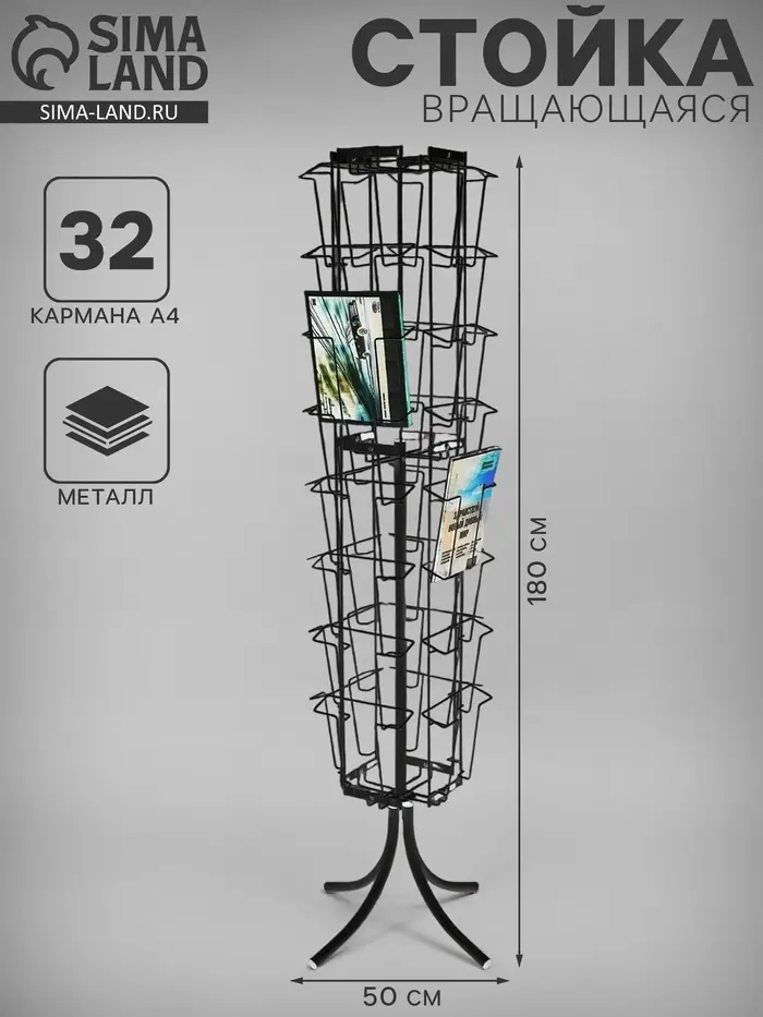 Стойка вращающаяся для прайсов, напольная, 32 кармана А4, 50×50×180, чёрная