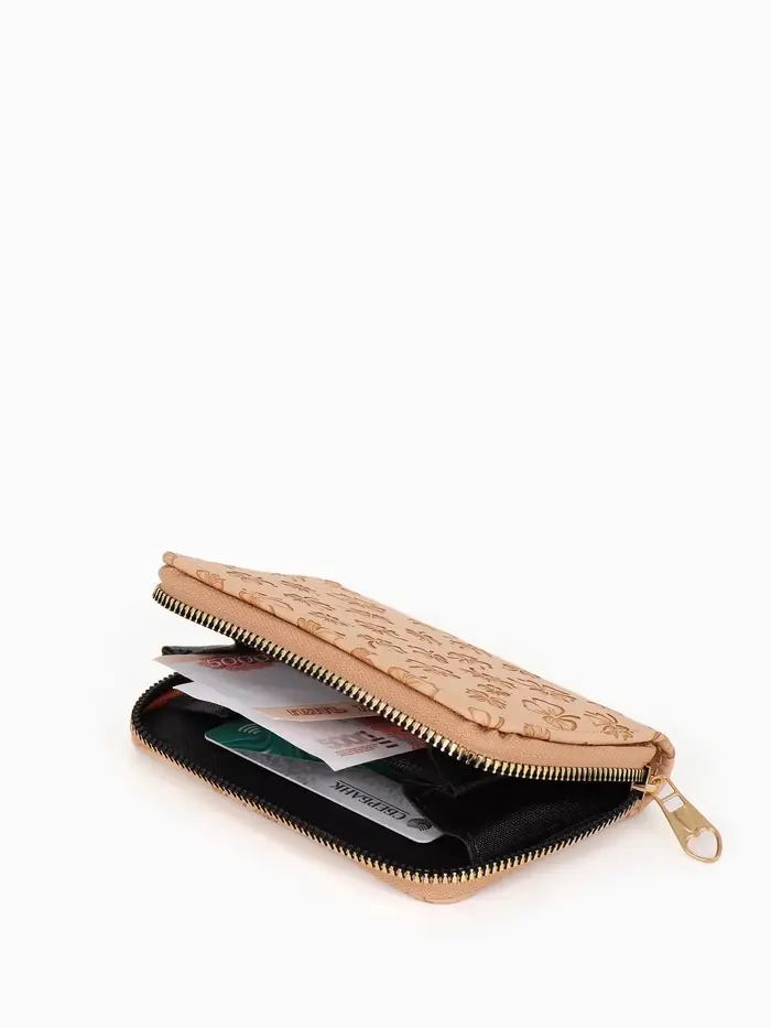 Кошелёк на молнии, 13×2×9 см, с принтом, бежевый