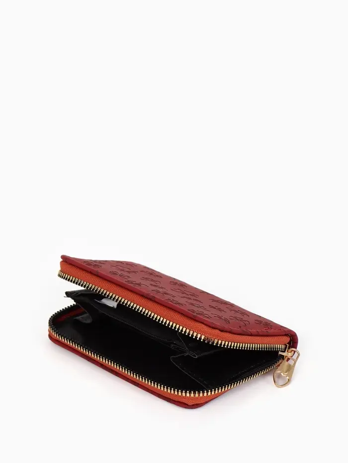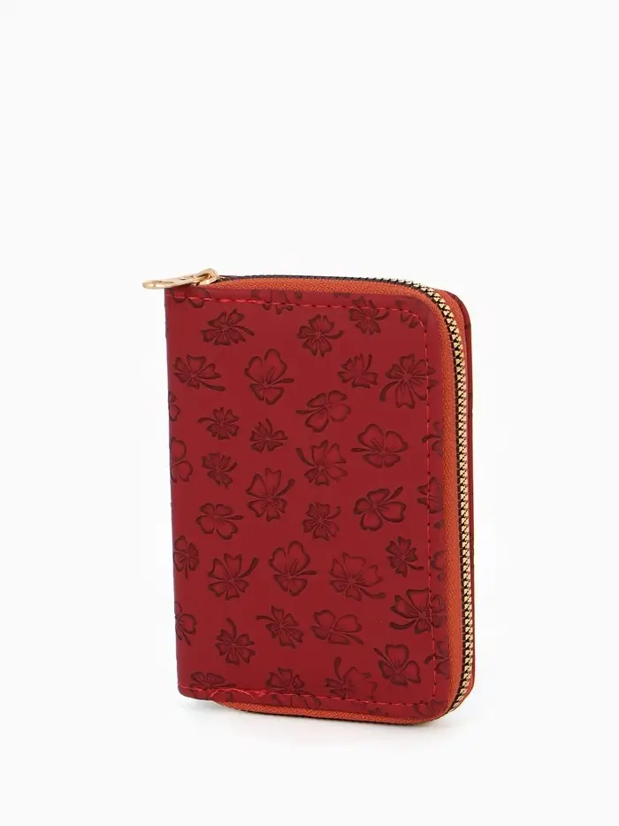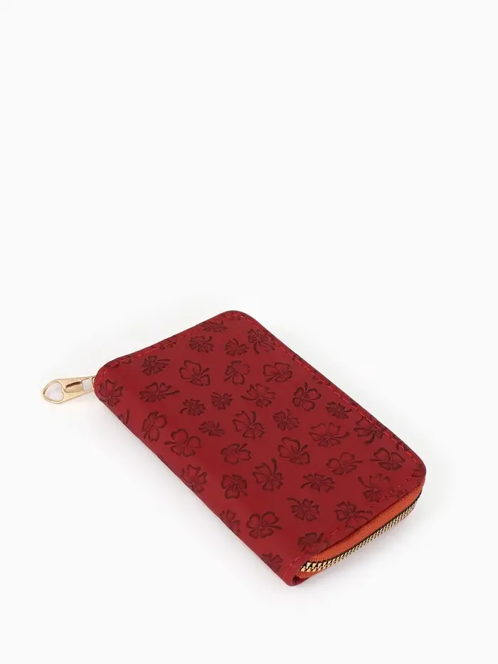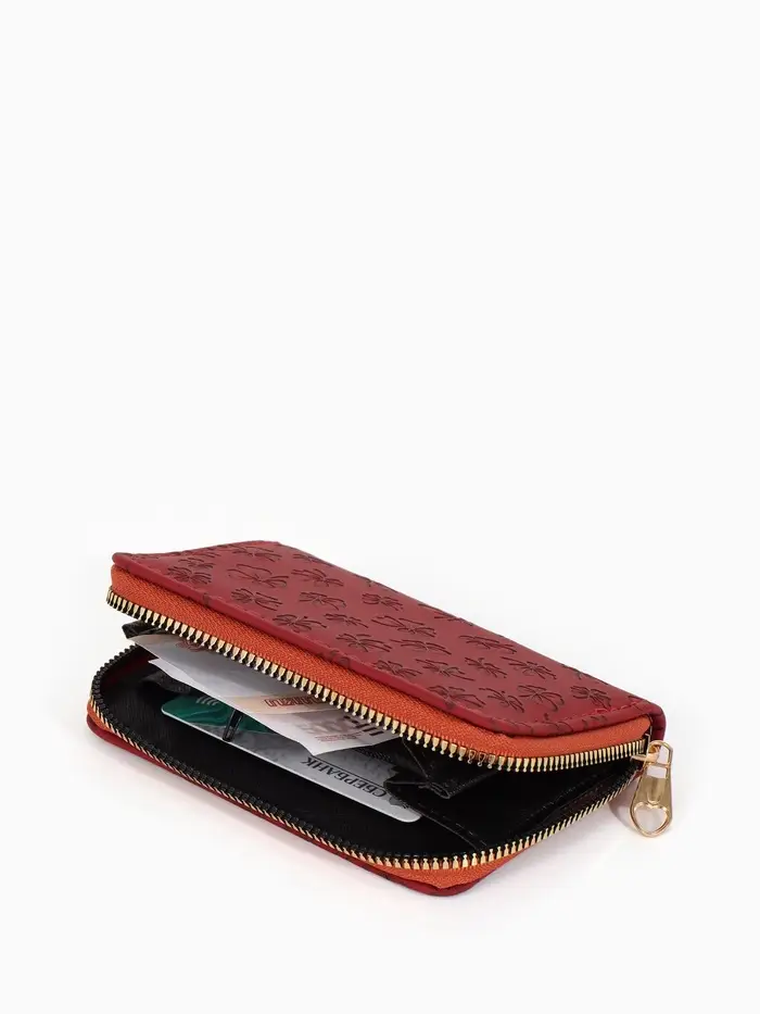 Кошелёк на молнии, 13×2×9 см, с принтом, бордовый