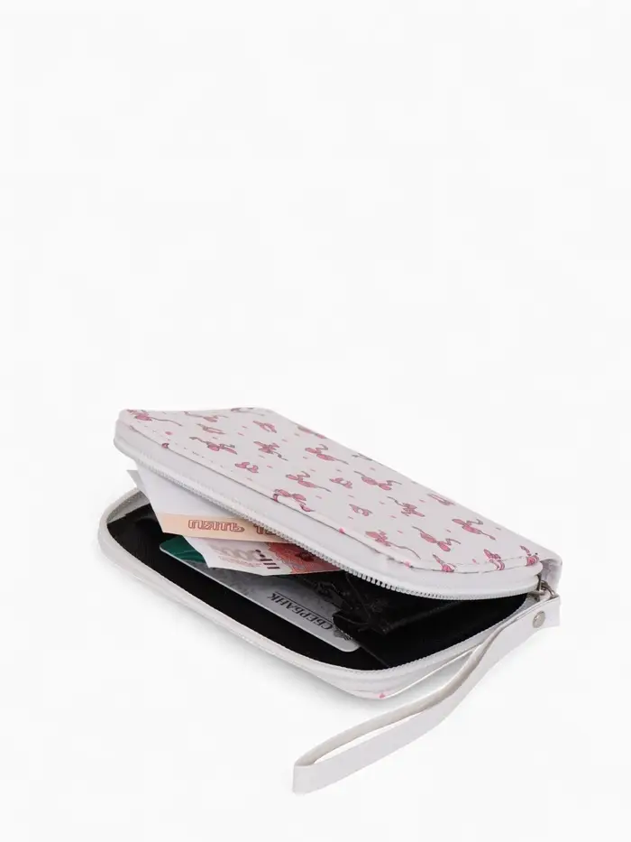 Кошелёк на молнии, 12×1.5×9 см, с принтом, белый/розовый
