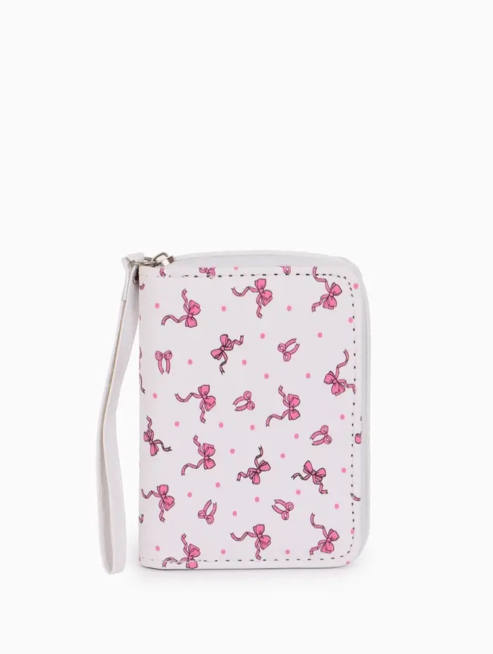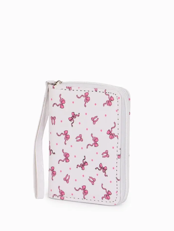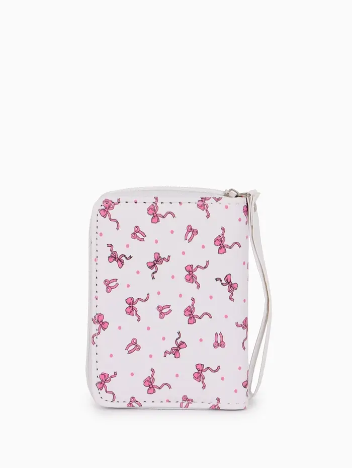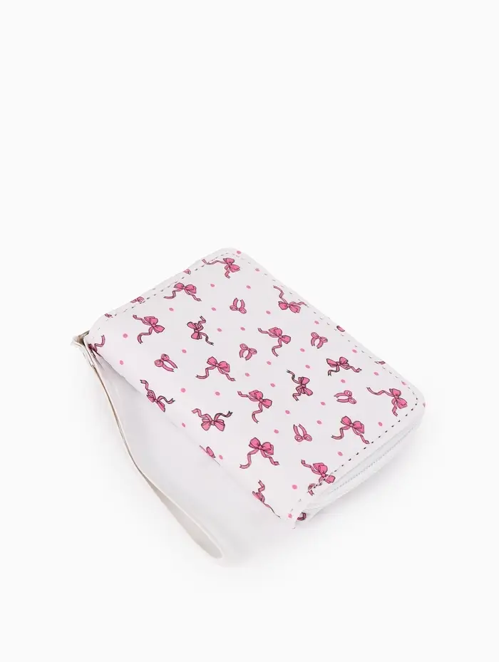Женский кошелёк с бантиком — это аксессуар, в котором продуманная организация встречается с нежным дизайном. Его изящный белый силуэт с рисунком легко становится центральной деталью образа, сохраняя при этом свою основную функцию. Компактный размер удобно лежит в руке и не теряется в сумке.