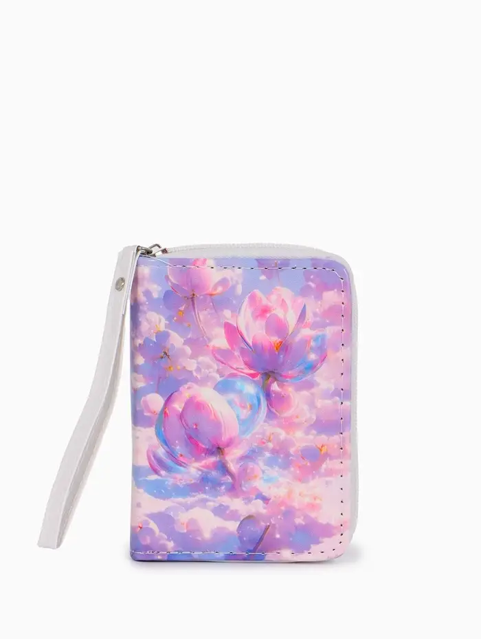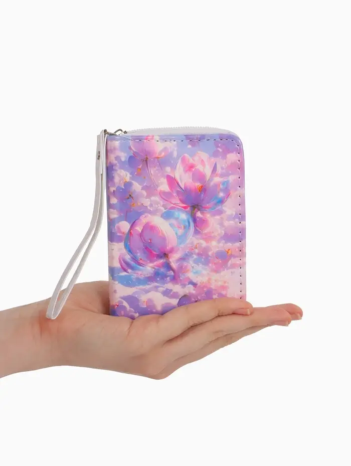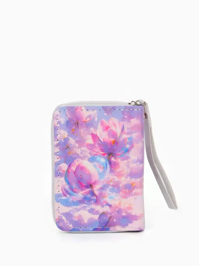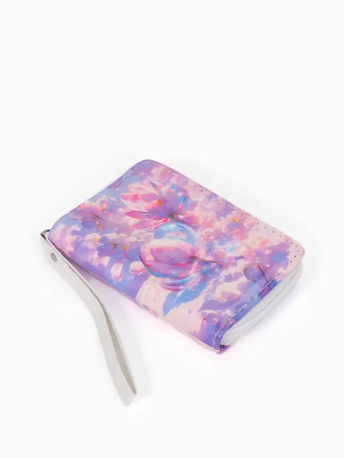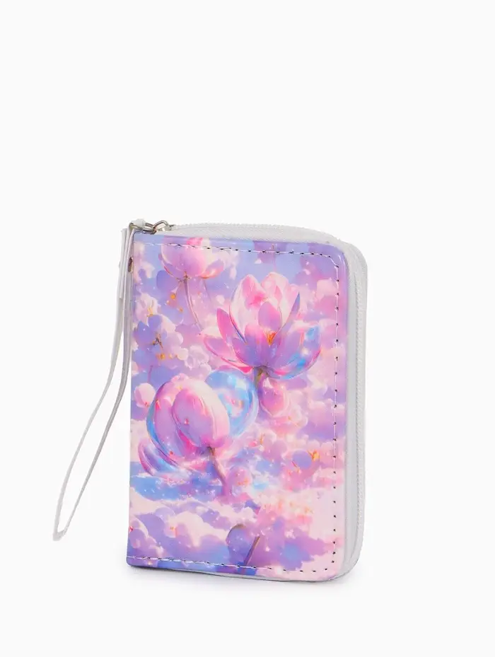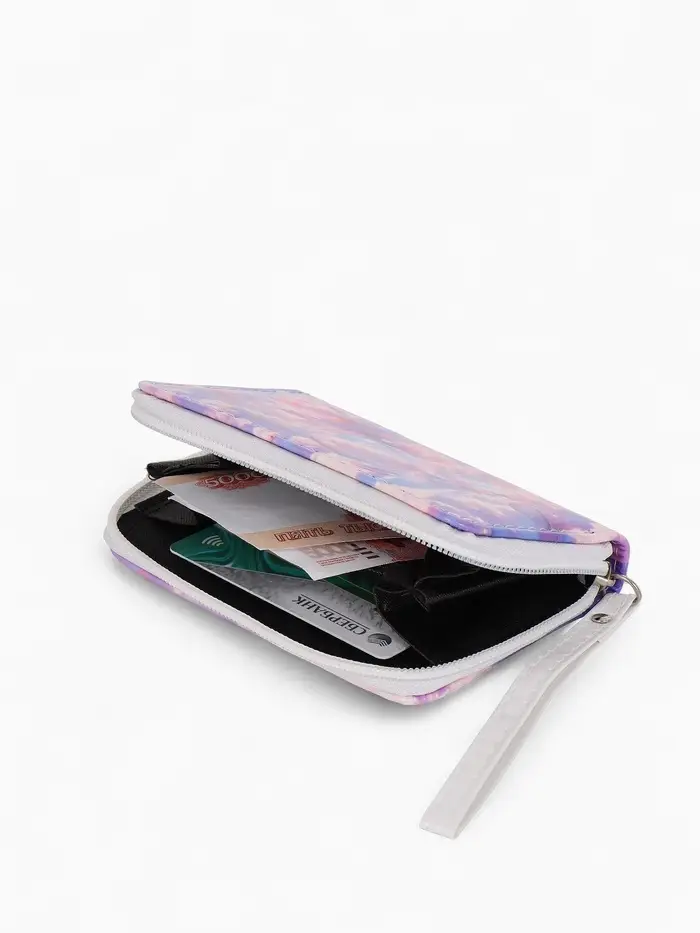 Кошелек жен 07-01-01 Июнь2535 цветы, 12*1,5*9 см, 2 отд+отд/молн, д/карт, сиреневый