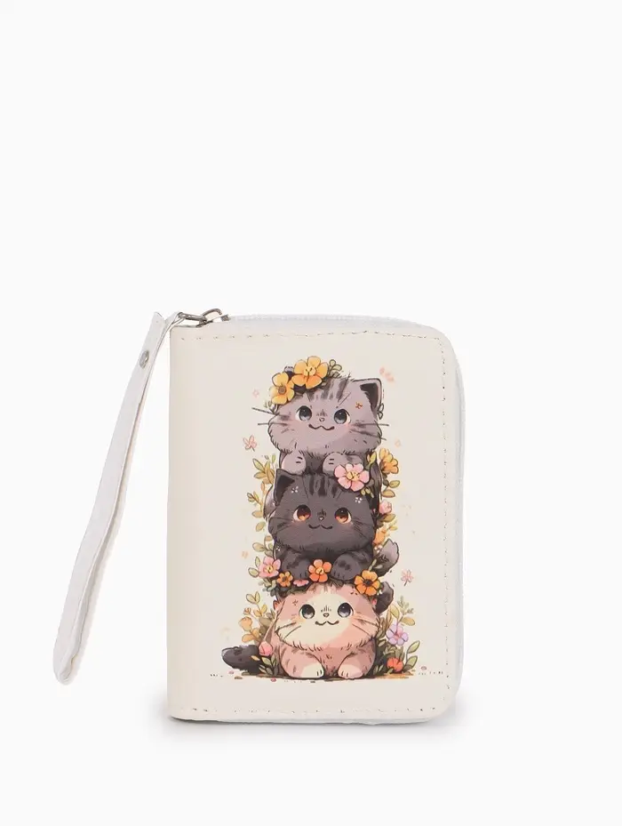 Кошелек дет 07-01-01 Июнь2527 кот, 12*1,5*9 см, 2 отд+отд/молн, д/карт, белый