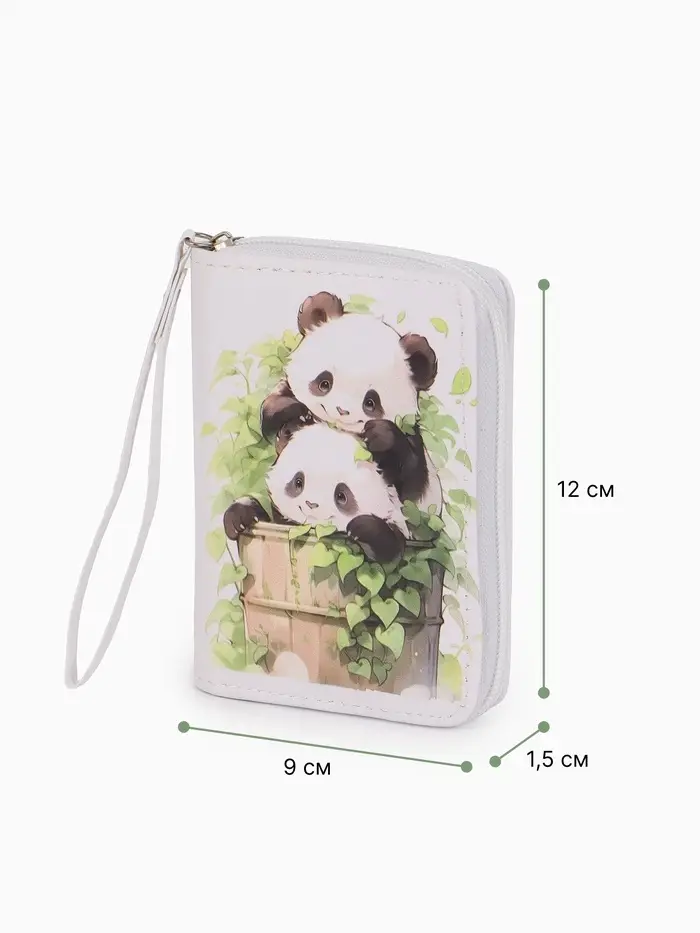 Кошелёк на молнии «Пандочки», 12×1.5×9 см, с принтом, белый