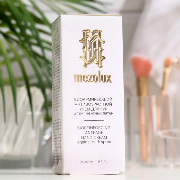 Антивозрастной крем для рук MEZOLUX, созданный на базе комплекса Armatix-White, оказывает биоармирующее и преображающее действие на кожу рук. Он стимулирует синтез коллагена, эластина, гиалуроновой кислоты и благодаря осветляющему компоненту коры чилийского дерева Больдо выравнивает тон кожи, уменьшая выраженность пигментных пятен. Натуральные масла ши и миндаля мгновенно питают, смягчают кожу рук, устраняют сухость кутикулы ногтей.