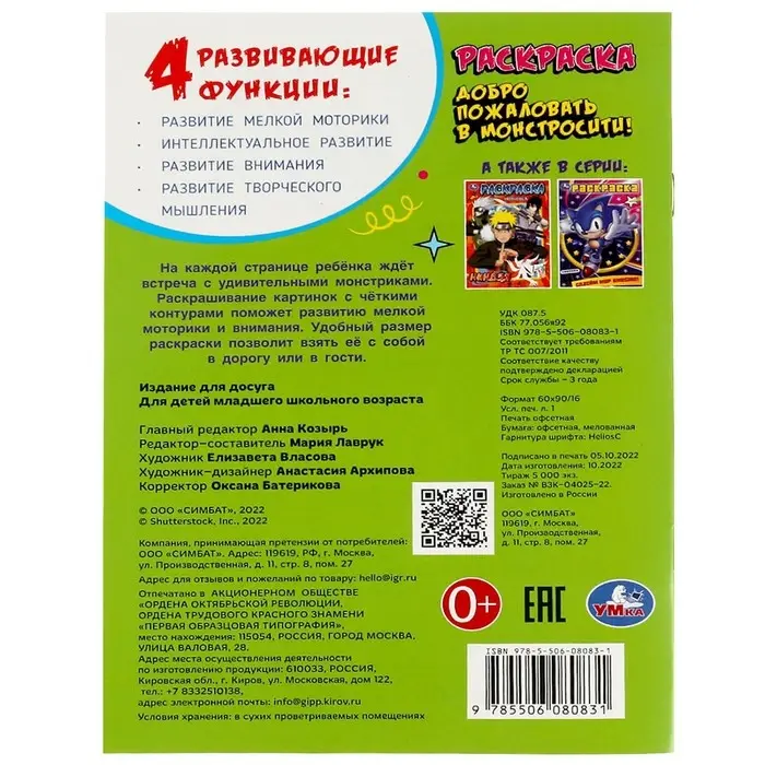 Раскраска «Добро пожаловать в Монстросити!», 16 страниц