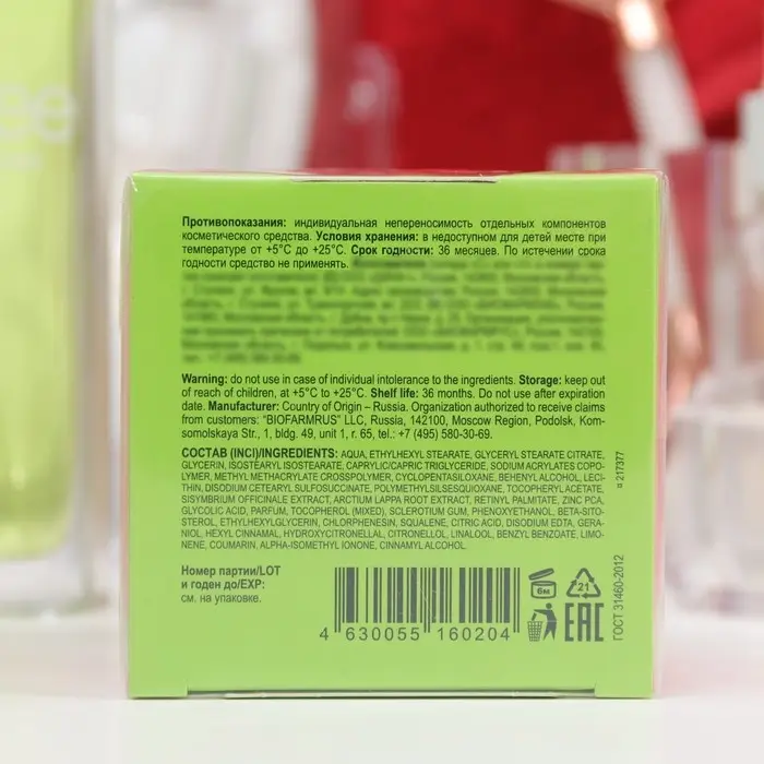 Состав: aqua, ethylhexyl stearate, glyceryl stearate citrate, glycerin, isostearyl isostearate, caprylic/capric triglyceride, sodium acrylates copolymer, methyl methacrylate crosspolymer, cyclopentasiloxane, behenyl alcohol, lecithin, disodium cetearyl sulfosuccinate, polymethylsilsesquioxane, tocopheryl acetate, sisymbrium officinale extract, arctium lappa root extract, retinyl palmitate, zinc pca, glycolic acid, parfum, tocopherol (mixed), sclerotium gum, phenoxyethanol, beta-sitosterol, ethylhexylglycerin, chlorphenesin, squalene, citric acid, disodium edta, geraniol, hexyl cinnamal, hydroxycitronellal, citronellol, linalool, benzyl benzoate, limonene, coumarin, alpha-isomethyl ionone, cinnamyl alcohol.