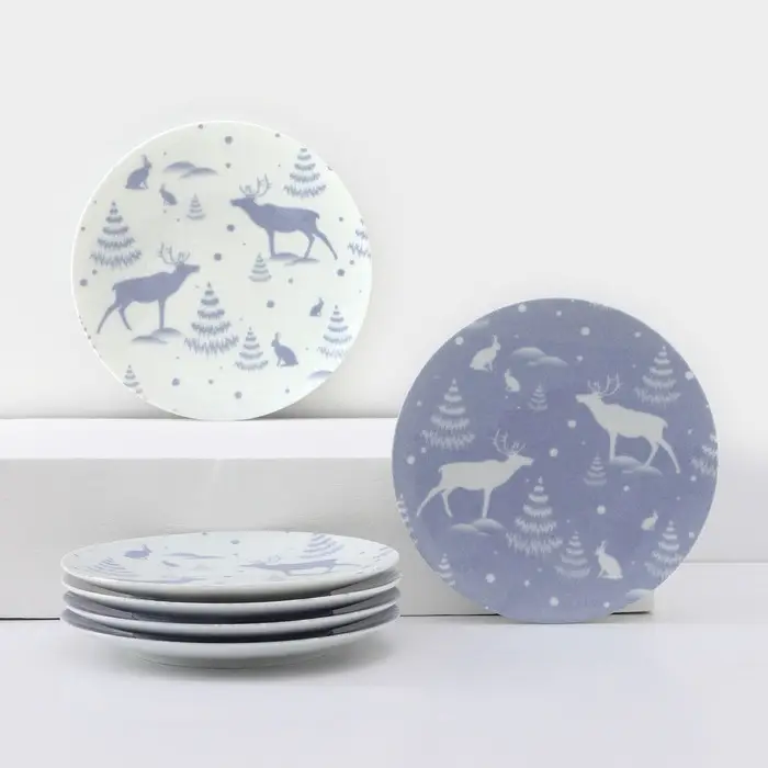 Набор фарфоровых тарелок «Зимний лес», 6 предметов, d=20 см, микс