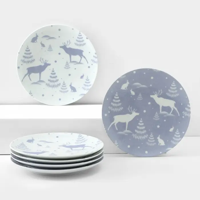 Набор фарфоровых тарелок «Зимний лес», 6 предметов, d=24 см, микс