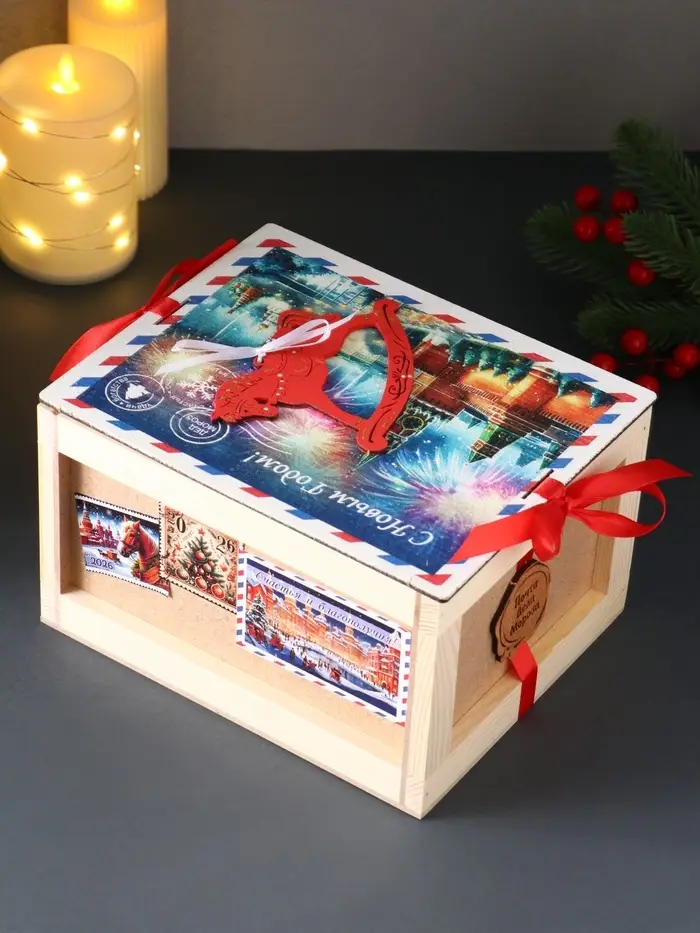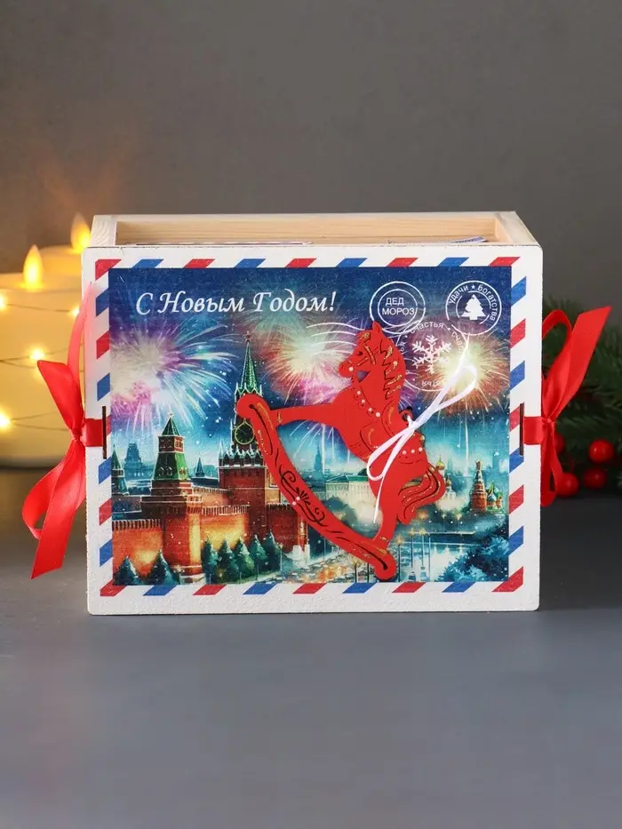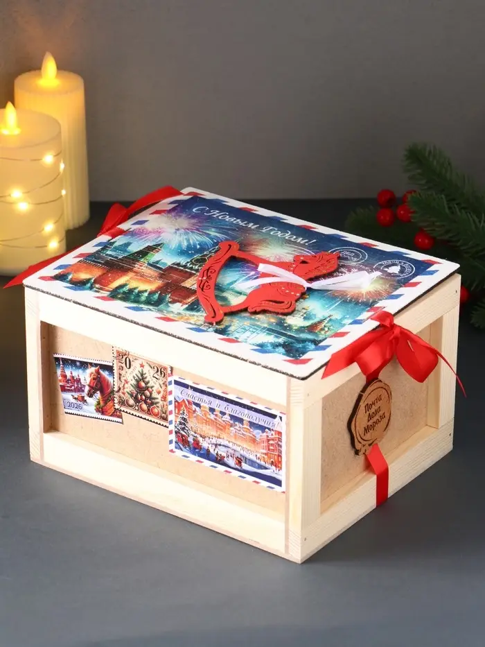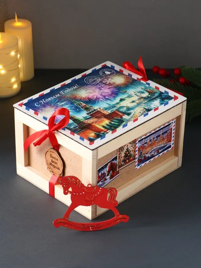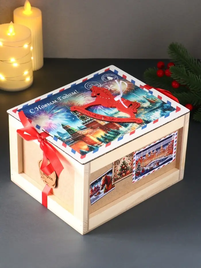 Шкатулка-посылка "С Новым Годом" с сувениром, 21х17,2х12,5 см