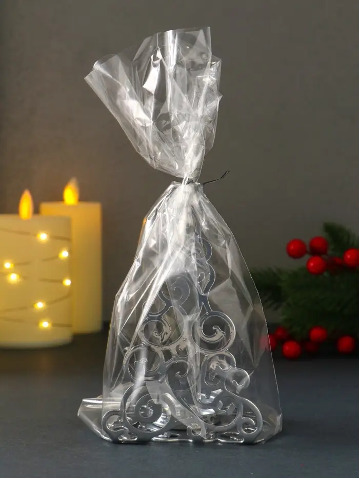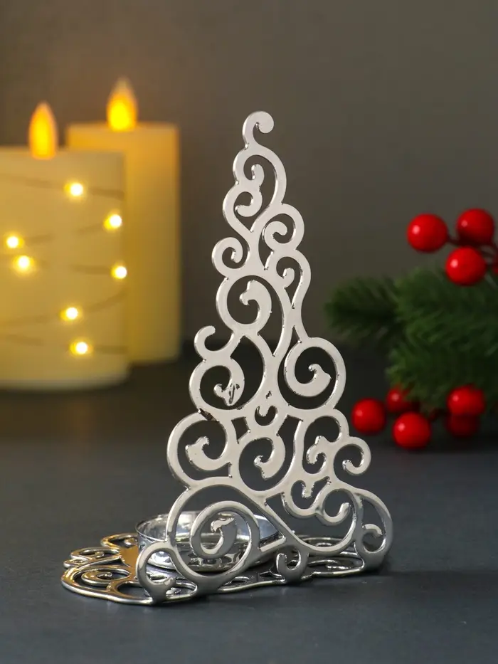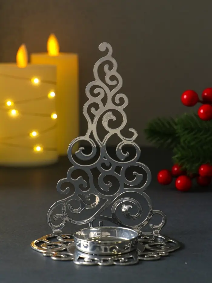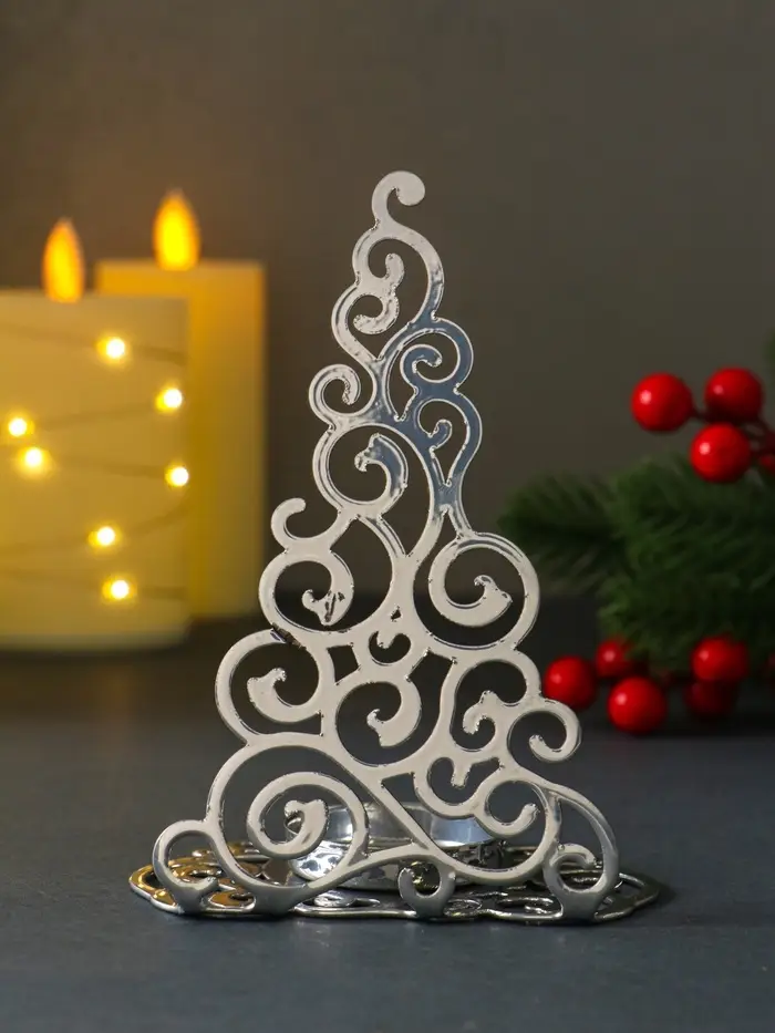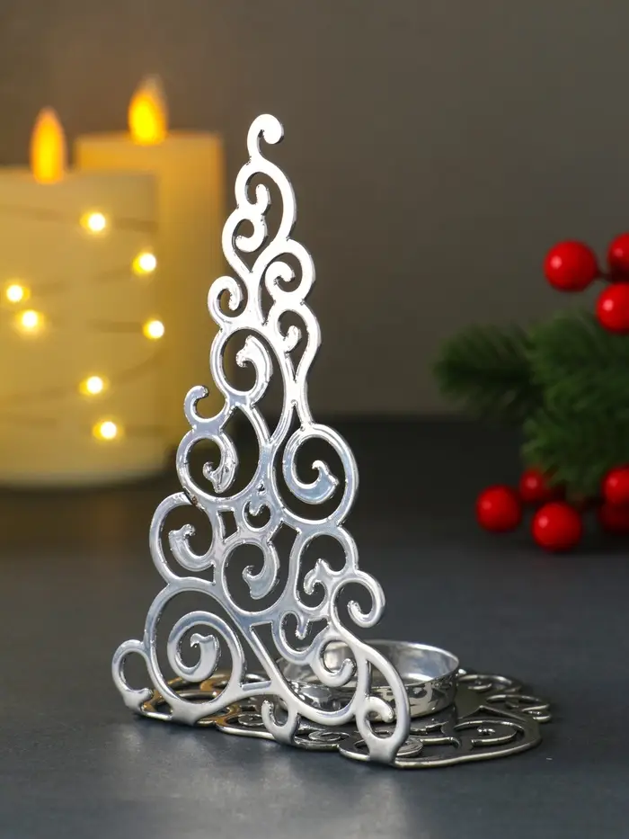 Подсвечник на 1 свечу «Ёлка новогодняя нарядная», металл под хром, 10×7.5×13.5 см