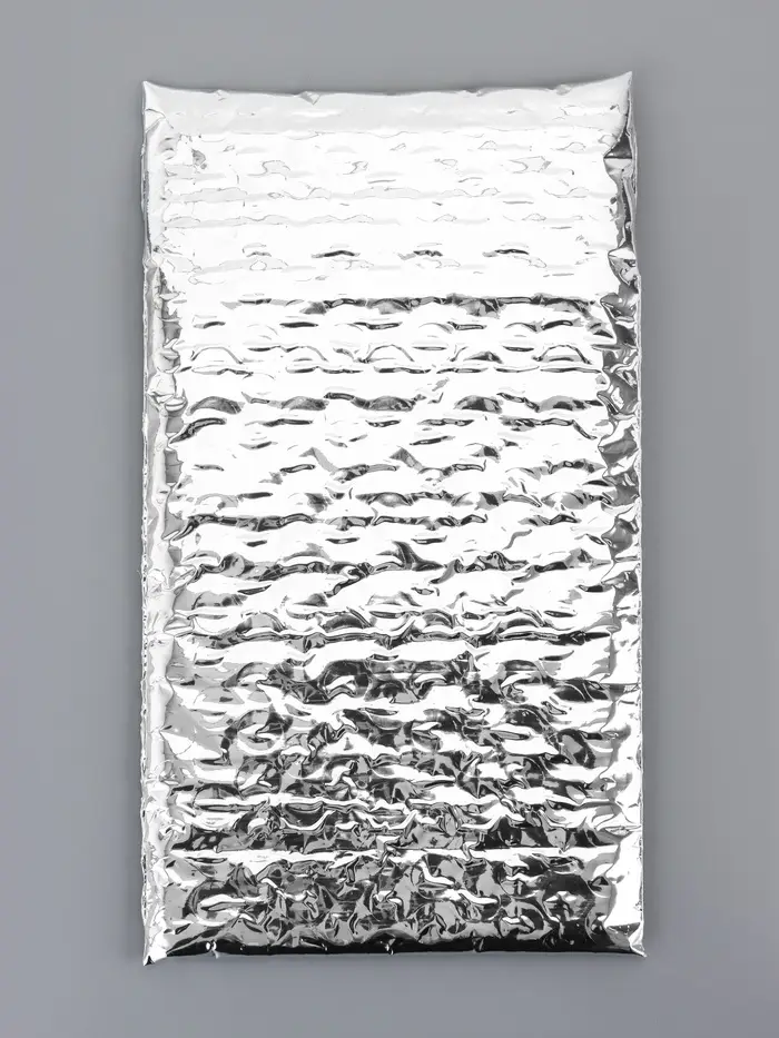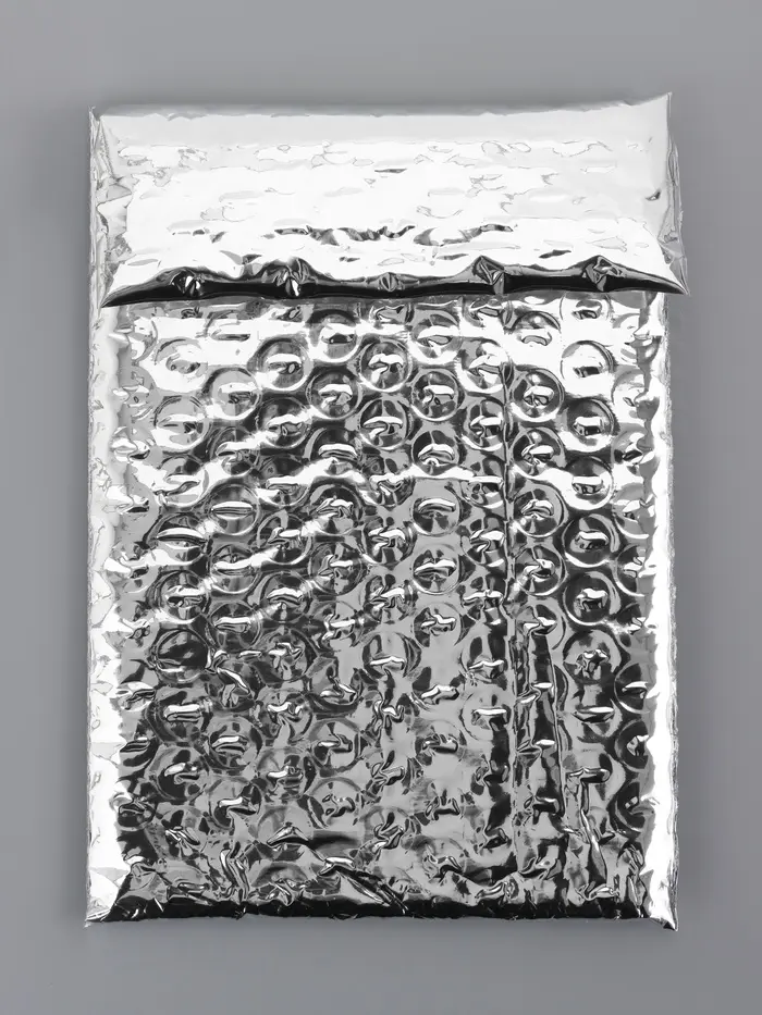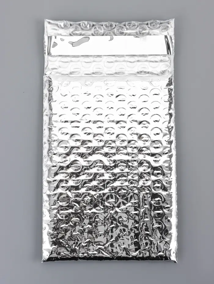 Пакет из ВПП c клапаном и клеевым слоем, серебряный 11×16 + 5 см