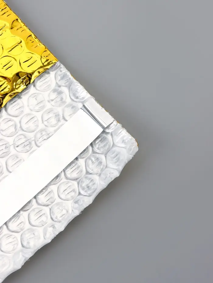 Пакет из ВПП c клапаном и клеевым слоем, золотой 11×16 + 5 см